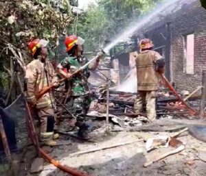Foto: Babinsa Koramil 17 Adimulyo Bantu Padamkan Api Kebakaran Rumah Warga Binaan.